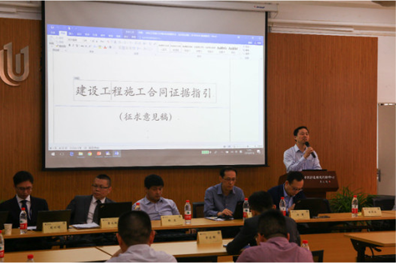 第五工作组联席召集人汤雷代表工作组向与会者介绍了《证据指引》的总体结构框架和篇章安排。之后,第五工作组的六位成员亓培冰、周利明、汤雷、陈旻、高印立、曹文衔依次向与会者引领介绍和讲解了合同主体与诉讼(仲裁)主体、合同效力、工程价款、建设工程价款优先受偿权、工期延误与索赔、工程质量与保修六个章节的内容。徐寅哲、朱永超、余涛、王春军、张培亮、袁海兵、林永泉、陈杰、李高来、郭兴隆、檀中文、谢瑜昱等与会人员对于《证据指引》的重点条文和问题,例如建设工程优先受偿权、承包人工程保修阶段质量责任的免除、关于工程设计人的举证、单方委托的工程质量鉴定等问题进行了积极、热烈的讨论和提问。工作组的成员也认真听取了与会者提出的意见和建议,并且表示会继续斟酌,不断完善《证据指引》,使其能够得到更好的实际运用。